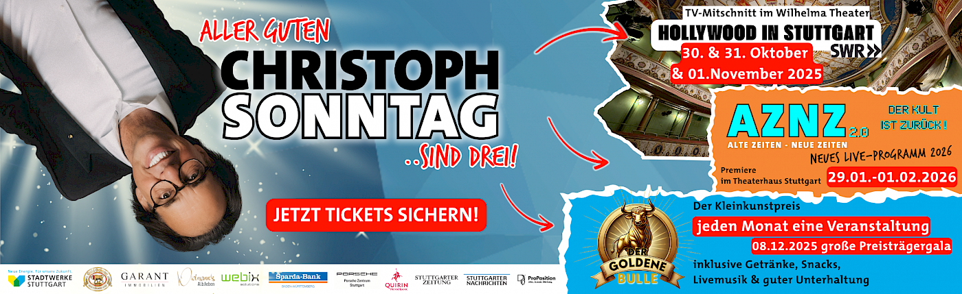 Erleben Sie Christoph Sonntag live und persönlich bei Ihrer nächsten Veranstaltung! Ob Firmenevent, private Feier oder kulturelle Veranstaltung – Christoph Sonntag bereichert Ihr Event mit maßgeschneiderter Unterhaltung und unvergleichlichem Kabarett. Für Buchungsanfragen füllen Sie bitte unser Kontaktformular aus oder kontaktieren Sie uns direkt. Teilen Sie uns den Anlass, das Datum und besondere Wünsche mit, und unser Team wird sich umgehend bei Ihnen melden, um alle Details zu besprechen. Verleihen Sie Ihrer Veranstaltung eine einzigartige Note mit einem der gefragtesten Kabarettisten Deutschlands.